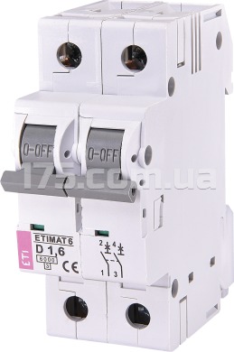 Автоматический выключатель ETIMAT 6 2p D 1,6A (6kA), ETI (2163507)