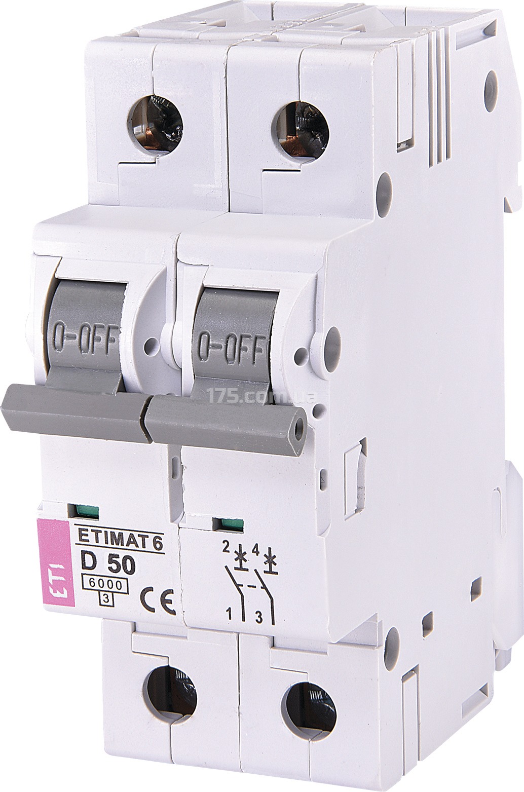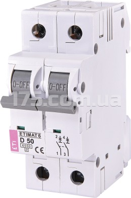 Автоматический выключатель ETIMAT 6 2p D 50A (6kA), ETI (2163521)