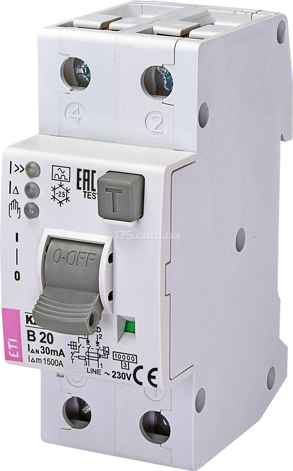 Диф. автомат KZS-2M2p EDI B 20/0,03 20А 30мА тип A (10kA), ETI (2172407)
