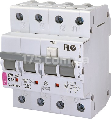 Диф. автомат KZS-4M 3p+N C 32/0,03 32А 30мА тип A (6kA), ETI (2174927)