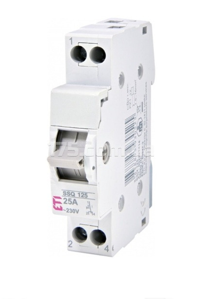 Single-pole switch SSQ 1125 with "1-0-2" positions for manual switching between two power sources. Rated at 125A. Suitable for high-load systems, reliable and easy to install.