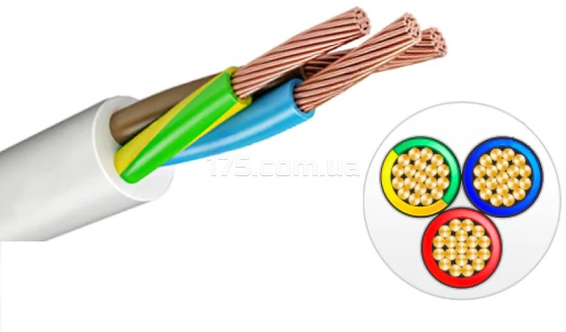 Гибкий соединительный шнур ПВСм. Четырехжильный кабель (3 рабочие жилы + 1 жила заземления). Используется для подключения трехфазного оборудования к сети.