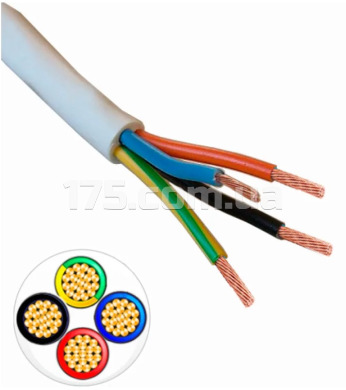 Гибкий соединительный шнур ПВСм. Пятижильный кабель (4 рабочие жилы + 1 жила заземления). Применяется для подключения мощных трехфазных потребителей и промышленного оборудования.