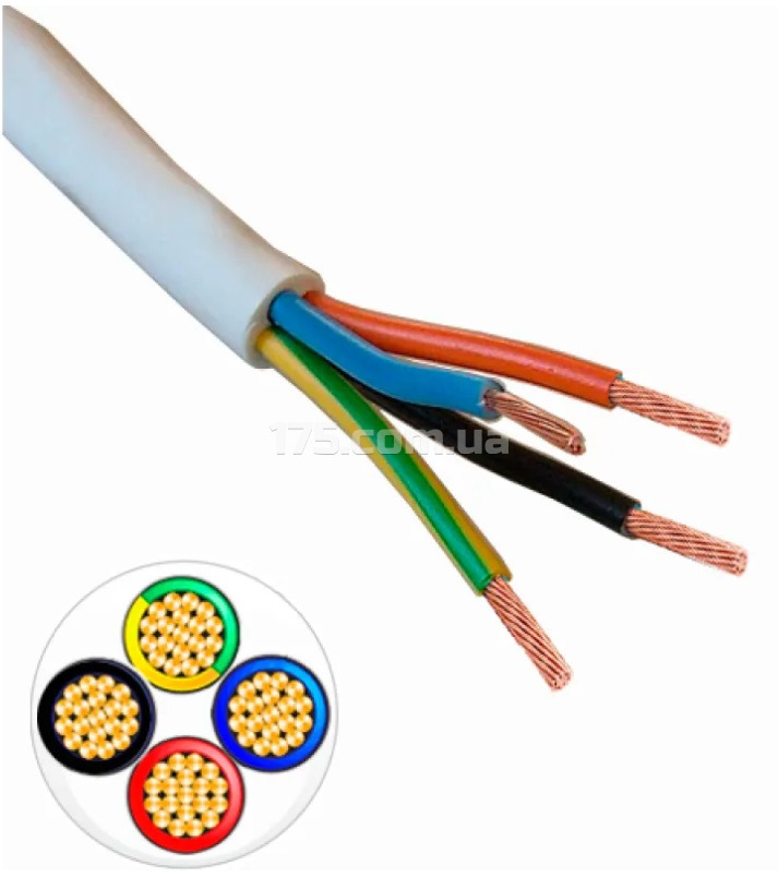 Гибкий соединительный шнур ПВСм. Пятижильный кабель (4 рабочие жилы + 1 жила заземления). Применяется для подключения мощных трехфазных потребителей и промышленного оборудования.