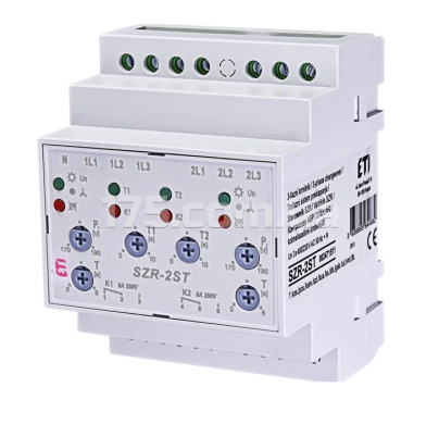 - Реле SZR-2ST предназначено для автоматического включения резервного питания при аварийном отключении основной сети. Контролирует напряжение, асимметрию и последовательность фаз, обеспечивая защиту оборудования. Устанавливается на DIN-рейку, рассчитано на работу в трёхфазных сетях 3×400/230 В, максимальный ток нагрузки – 8 А. Имеет гальваническую развязку и модульное исполнение. Производитель – ETI (Словения)
