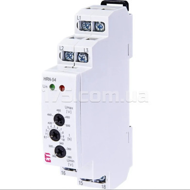 Реле HRN-54 предназначено для контроля уровня напряжения и правильного чередования фаз в трёхфазных сетях без использования нейтрали. Обеспечивает защиту электродвигателей и оборудования от перенапряжения, пониженного напряжения, обрыва и неправильной последовательности фаз. Устанавливается на DIN-рейку, рассчитано на номинальное напряжение 3×400 В, максимальный ток нагрузки – 8 А.