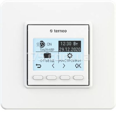 Терморегулятор terneo pro — программируемый термостат для электрических тёплых полов всех типов: кабельных, плёночных, матовых. Позволяет задать до 4 температурных периодов в день, адаптируя обогрев под ваш график. Оснащён двумя датчиками — температуры воздуха и пола — для точного контроля.