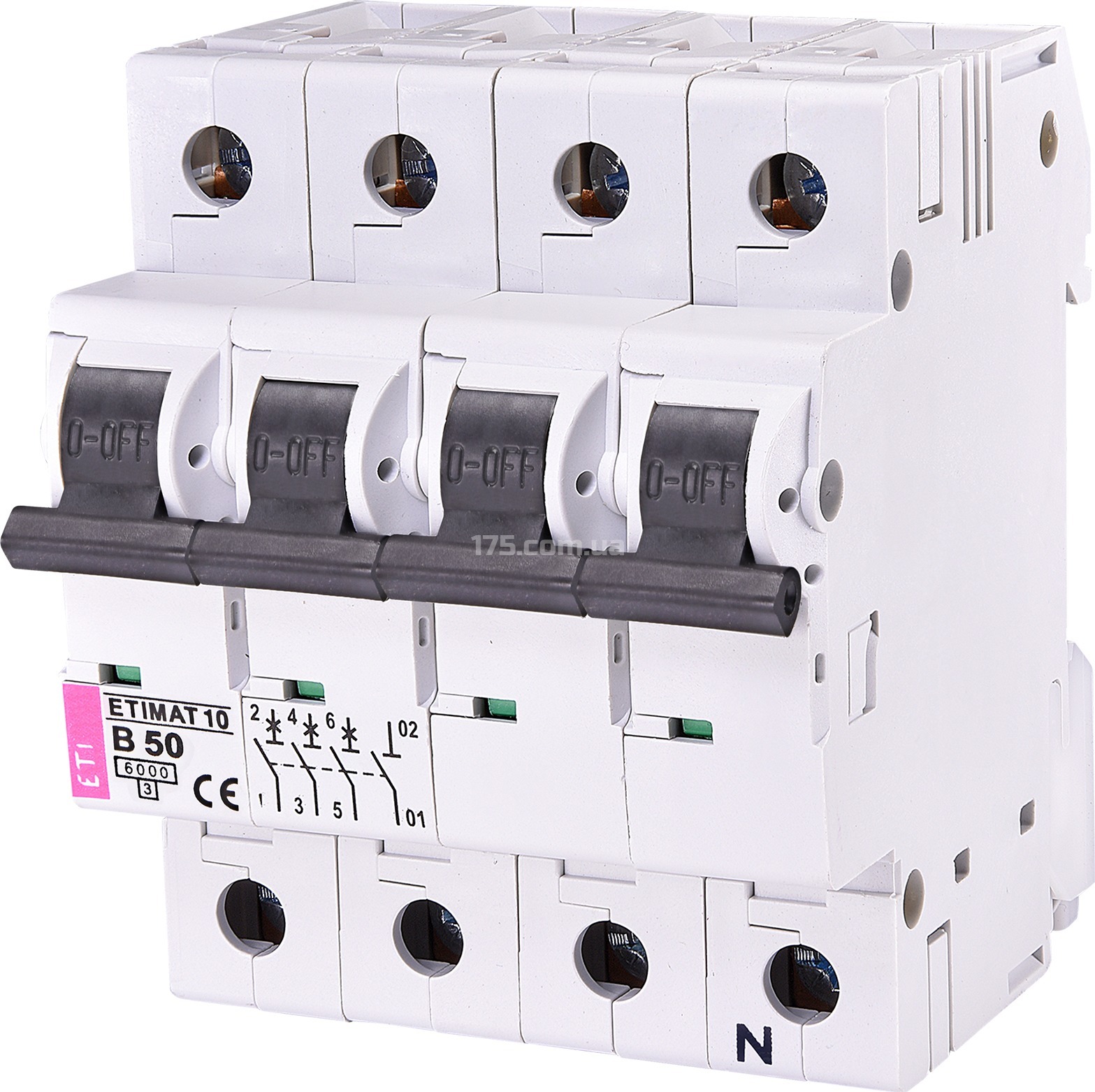 Автоматичний вимикач ETIMAT 10 3p+N В 50А (6kA), ETI (2126721)