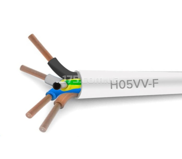 Гнучкий шнур H05VV-F. П'ятижильний кабель з жилою заземлення (G). Використовується для підключення приладів, які потребують п'ять провідників.
