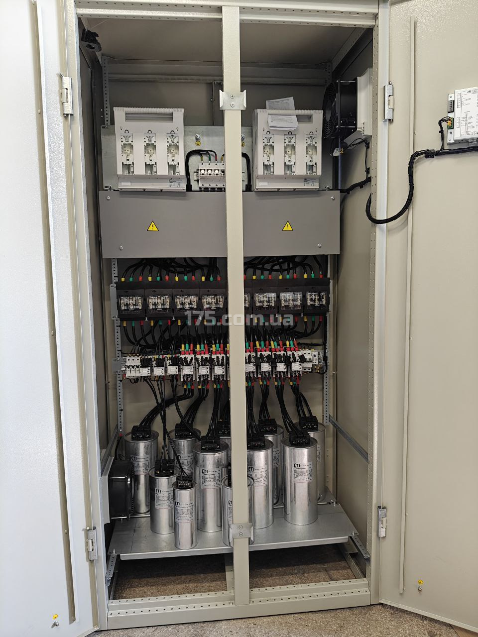 Установка работает в автоматическом режиме, управляя ступенями конденсаторных батарей и поддерживая стабильное качество электроэнергии.